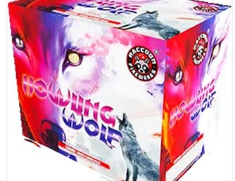 Howling Wolf going to howl your night away like a wolf to a full moon with whistling tails to red strobe, green strobe, gold strobe, white strobe and crackles.