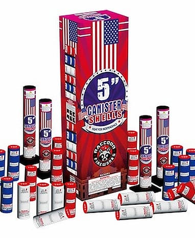 Raccoon – 5″ Canister Shells, with the popular Nishiki effect. Box 24 Shells w/ 4 Launch Tubes.