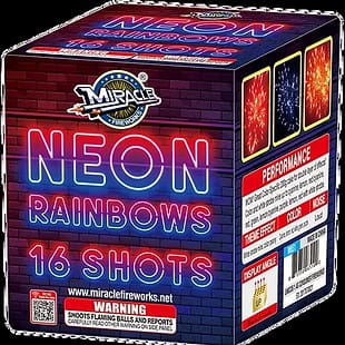 Fantastic cake with 6 different vivid and neon colors Red,green,yellow,blue,purple and cyan.4 shots finale!